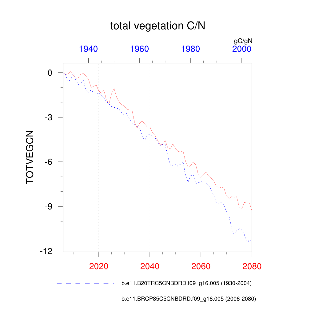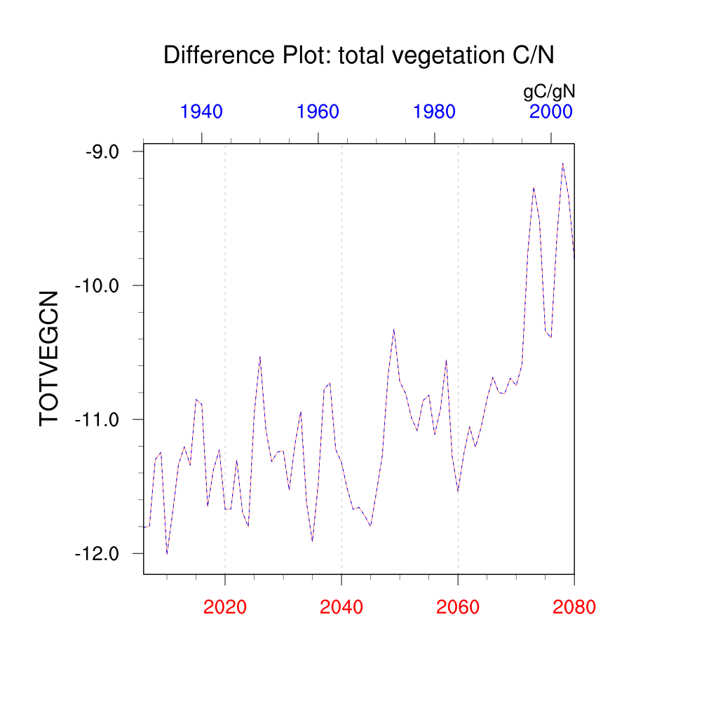 | total vegetation C/N (TOTVEGCN) | TrendPlot | DifferencePlot | AnomalyPlot | ||