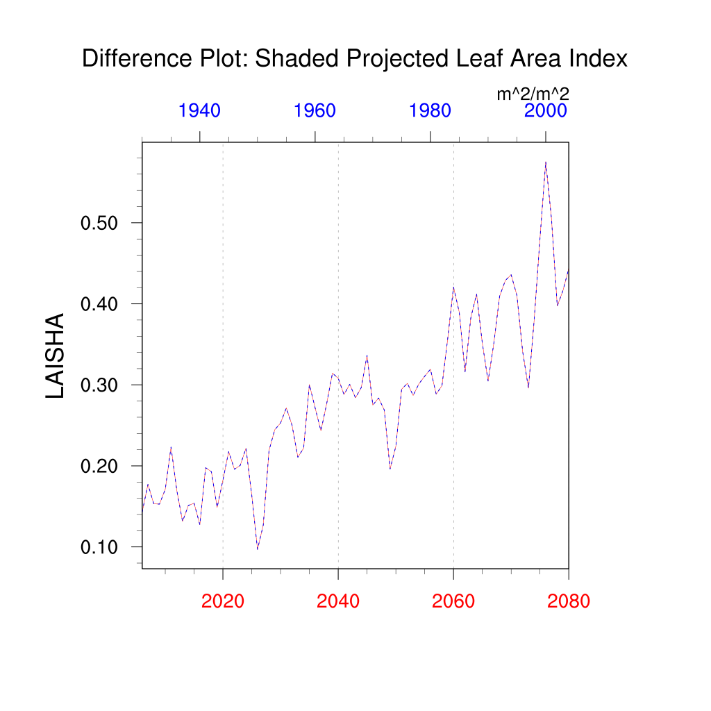 | Shaded Projected Leaf Area Index (LAISHA) | TrendPlot | DifferencePlot | AnomalyPlot | ||