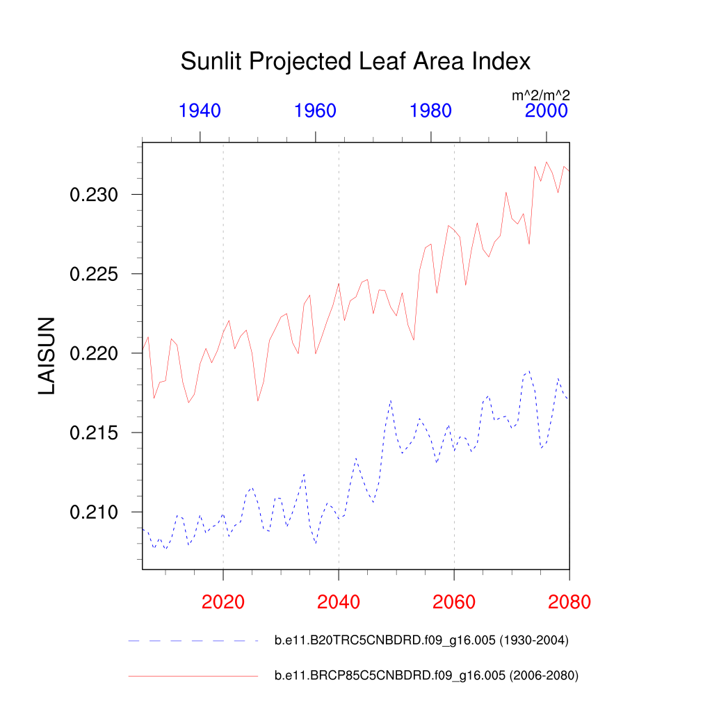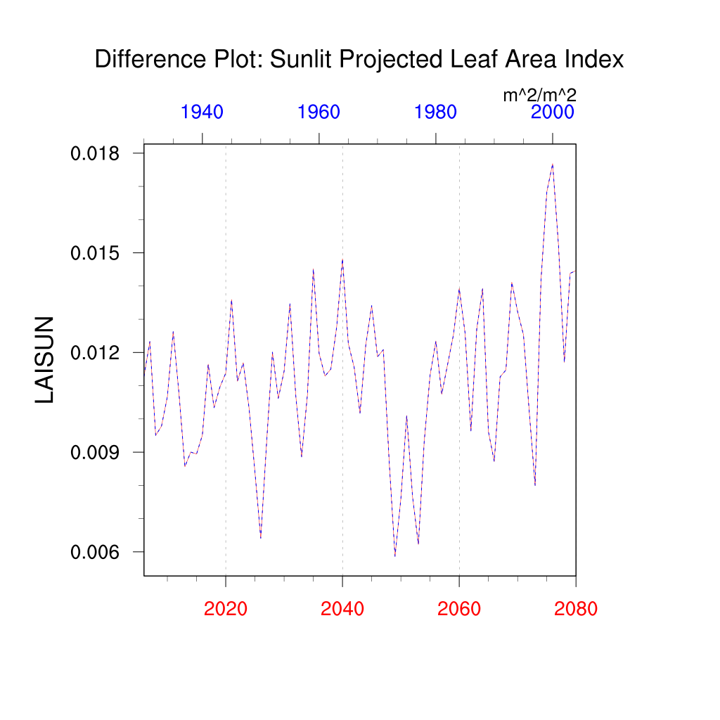 | Sunlit Projected Leaf Area Index (LAISUN) | TrendPlot | DifferencePlot | AnomalyPlot | ||