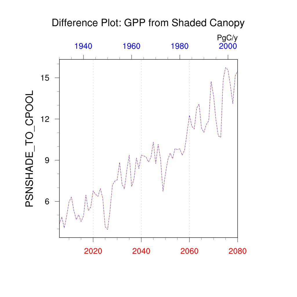 | GPP from Shaded Canopy (PSNSHADE_TO_CPOOL) | TrendPlot | DifferencePlot | AnomalyPlot | ||