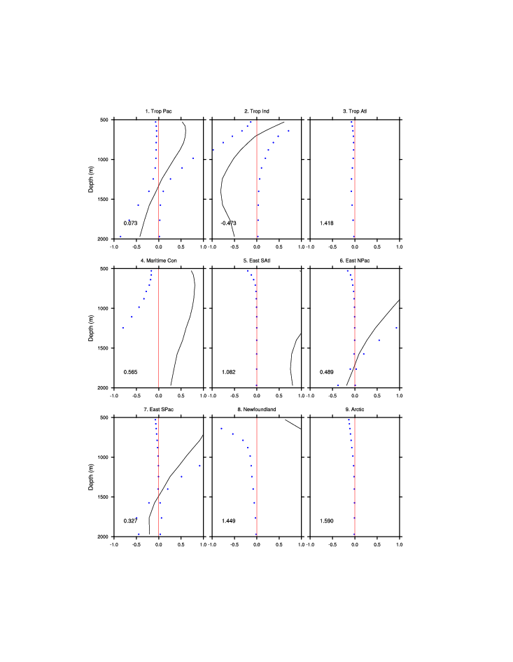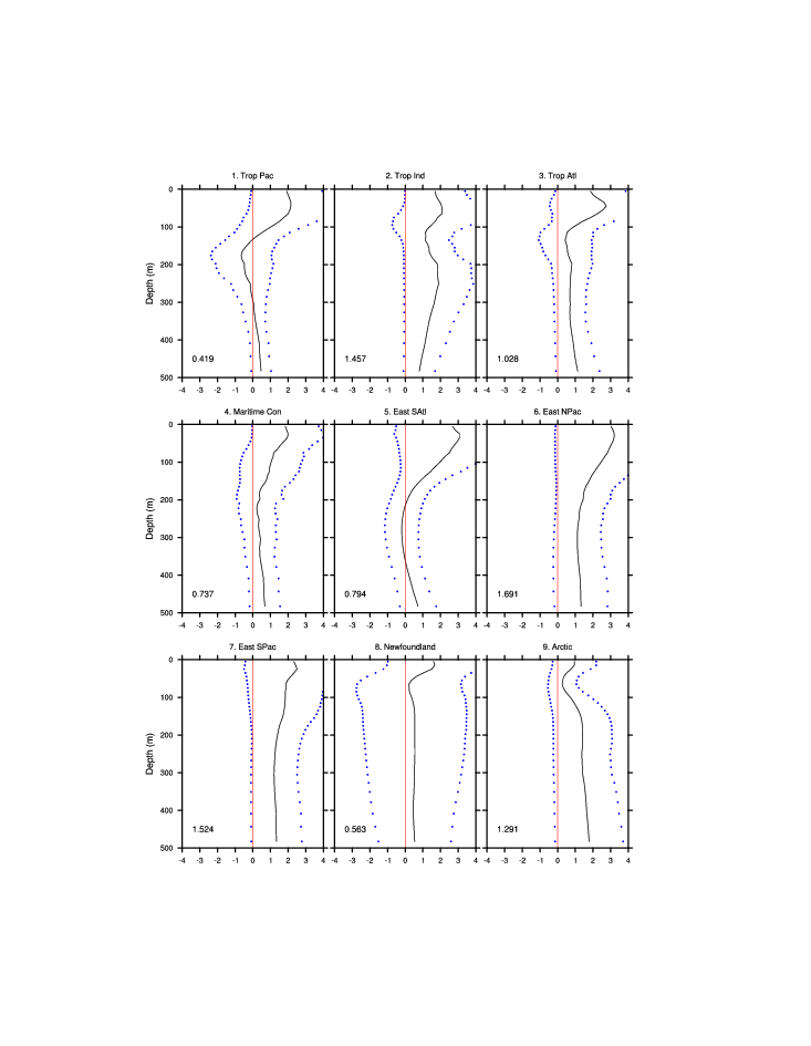 | Regional average T & S anomaly vs. depth