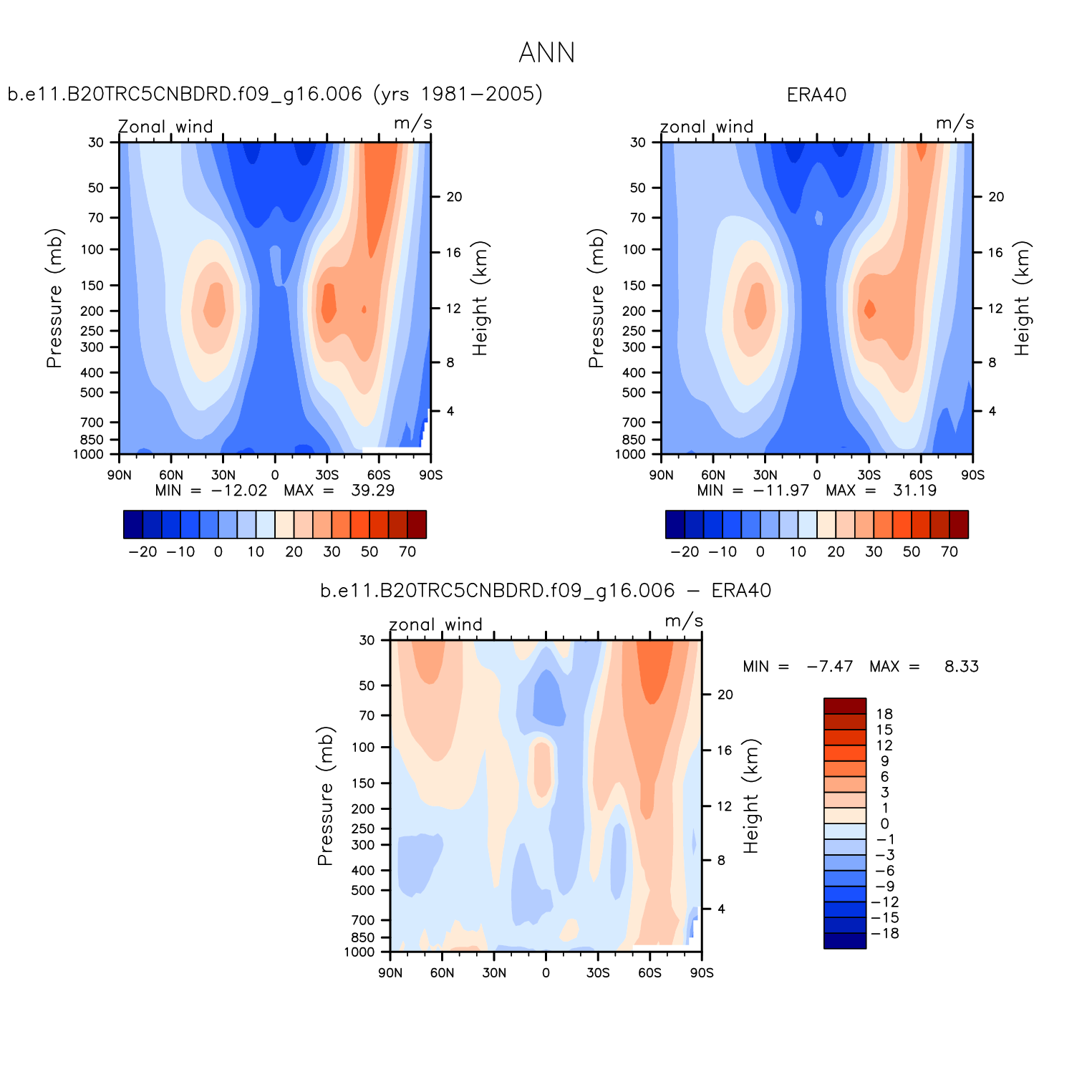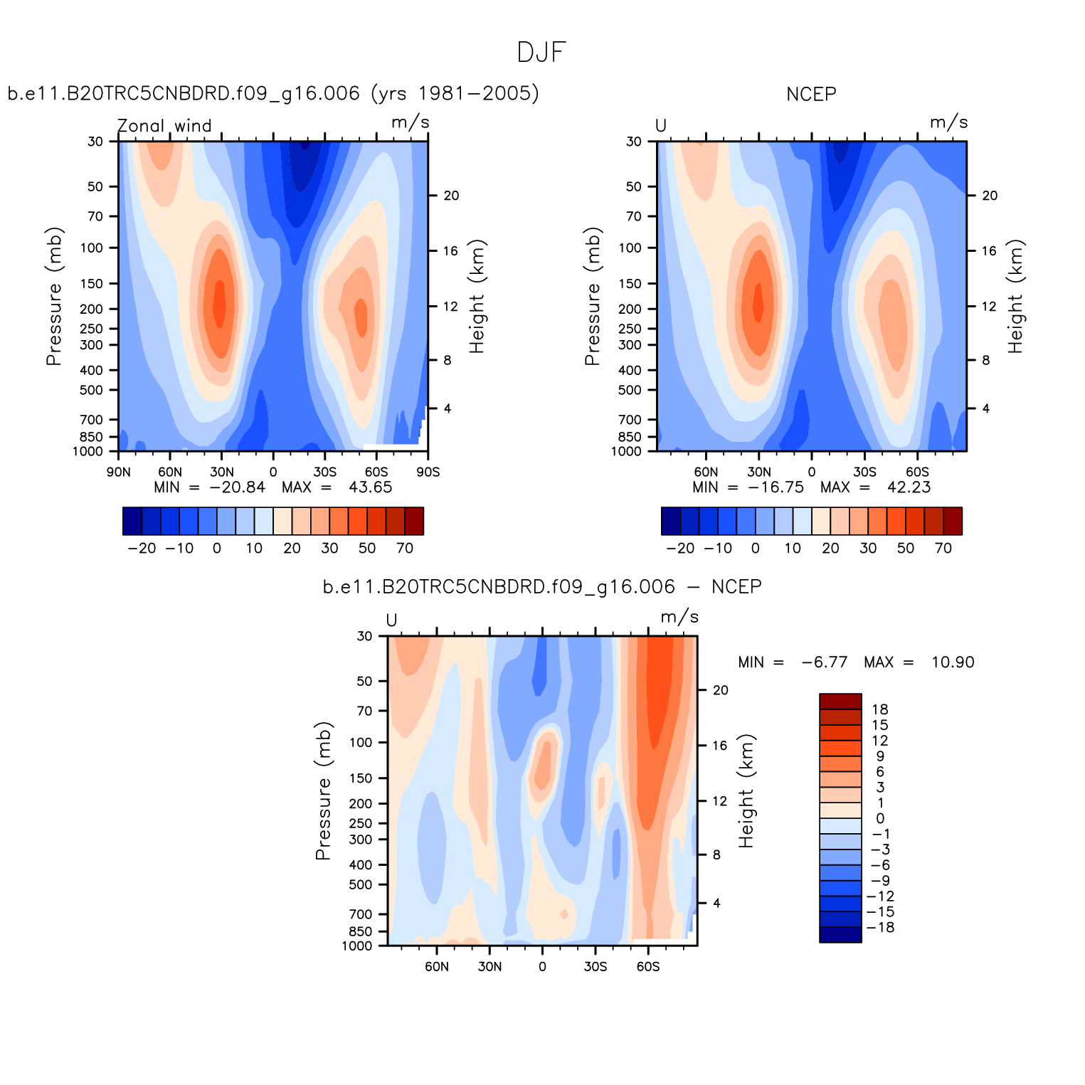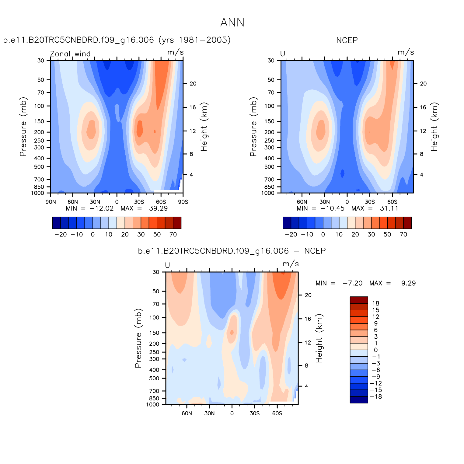 DIAG Set 4 - Vertical contour plots of DJF, JJA and ANN zonal means