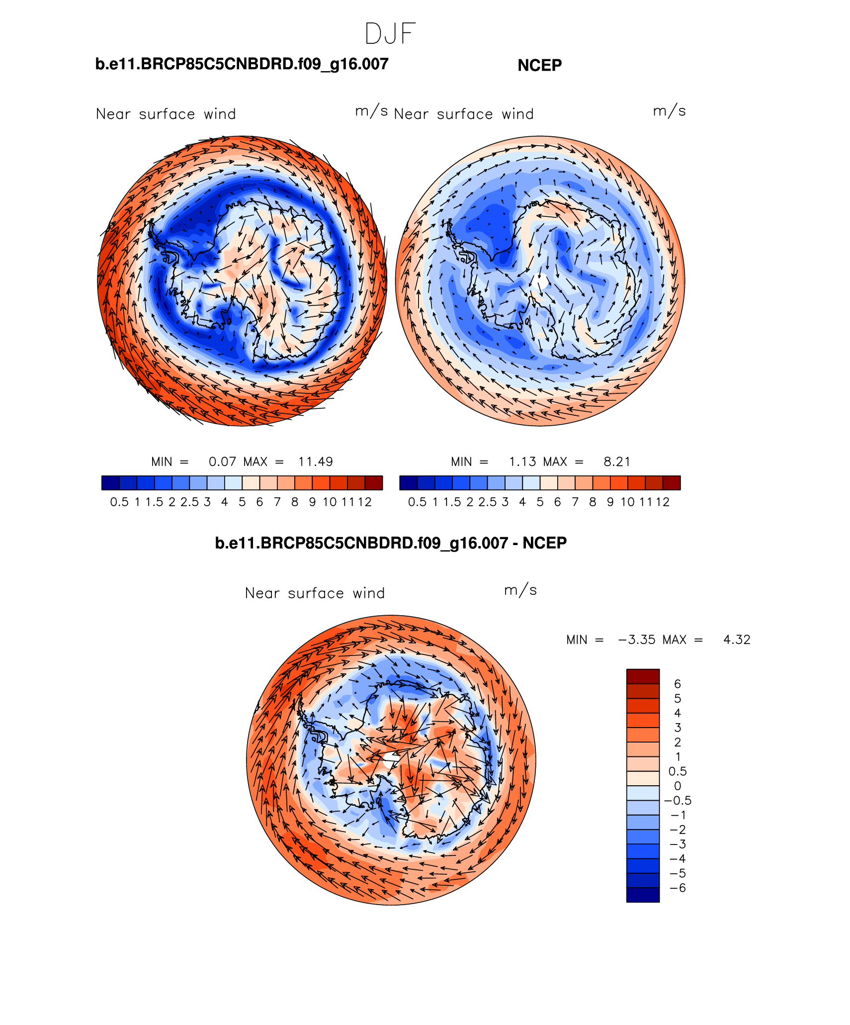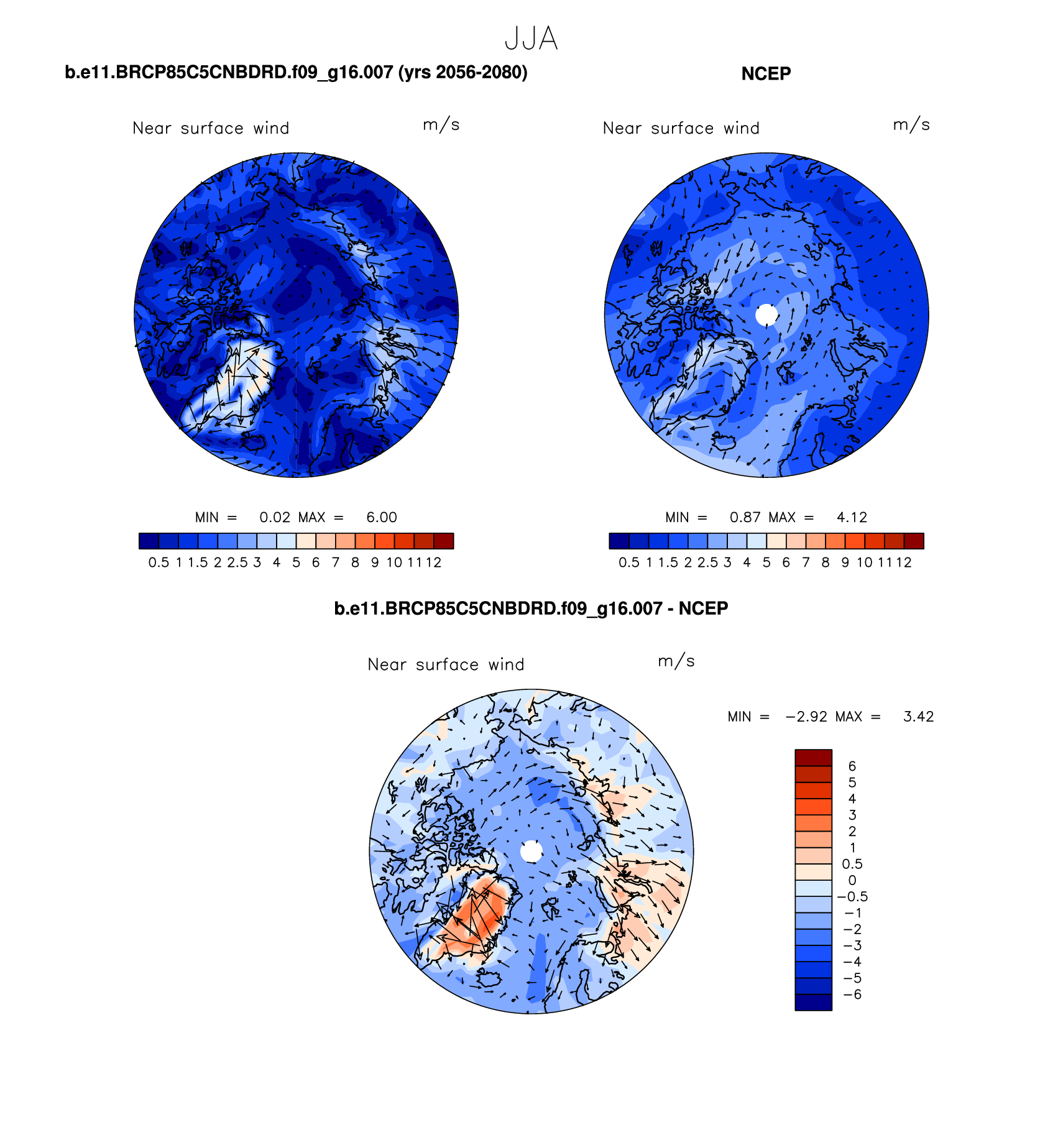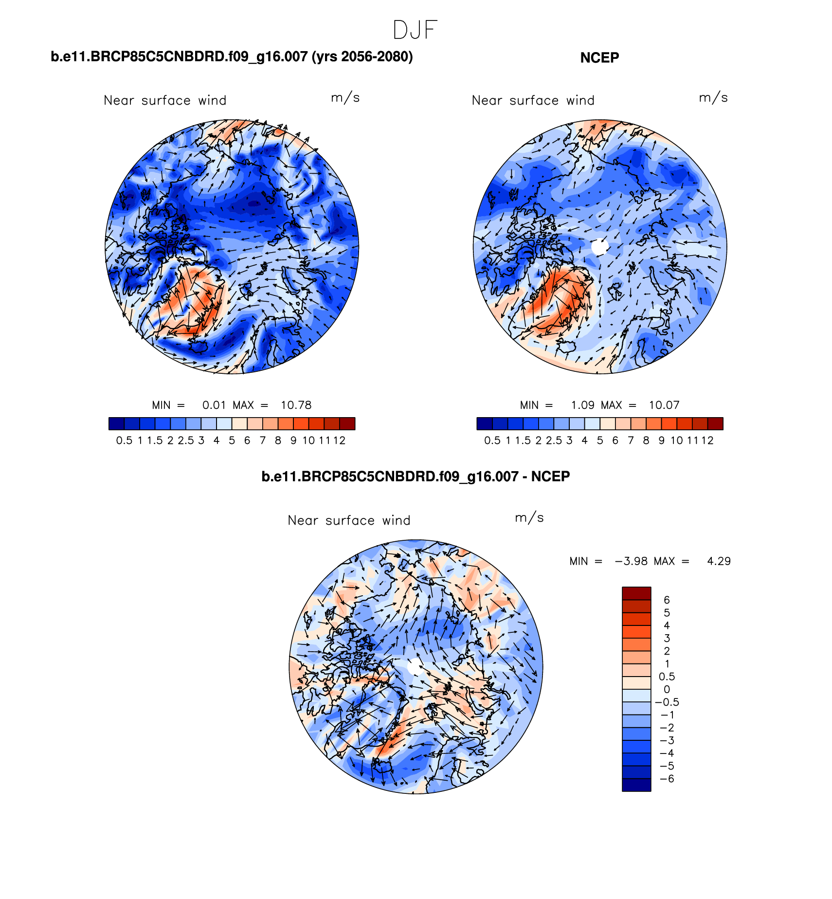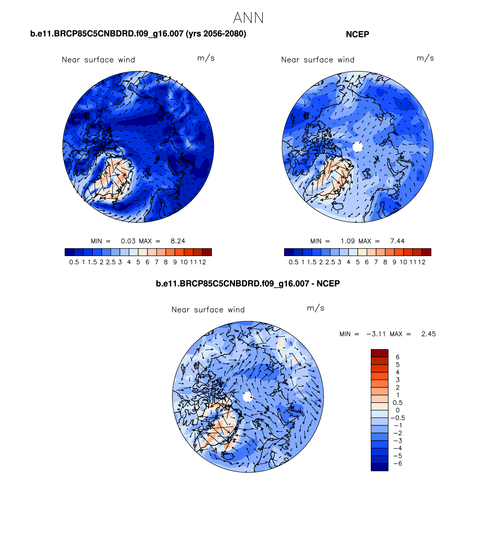 b.e11.BRCP85C5CNBDRD.f09_g16.007 DIAG Set 7 - Polar contour/vector plots of DJF, JJA and ANN means