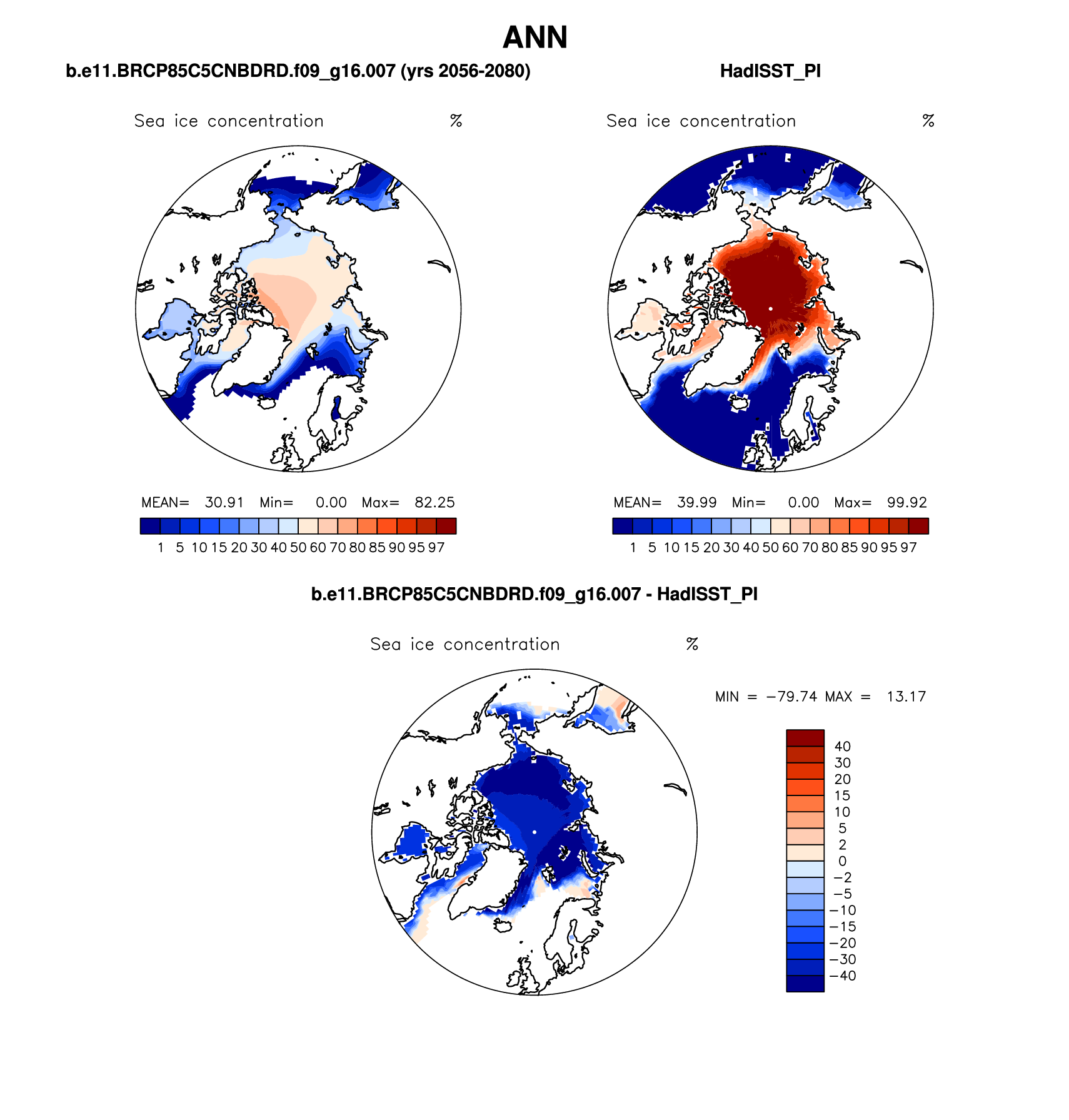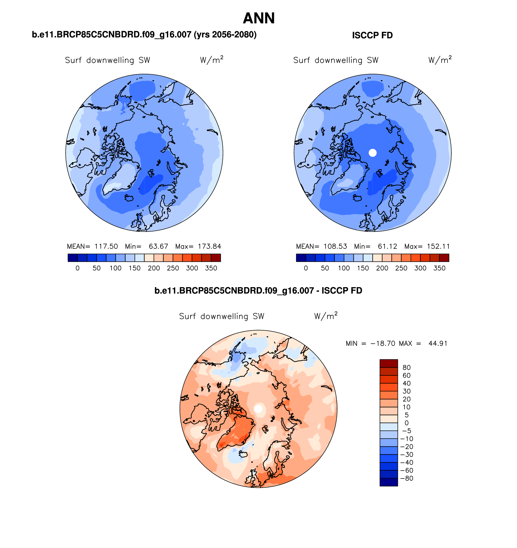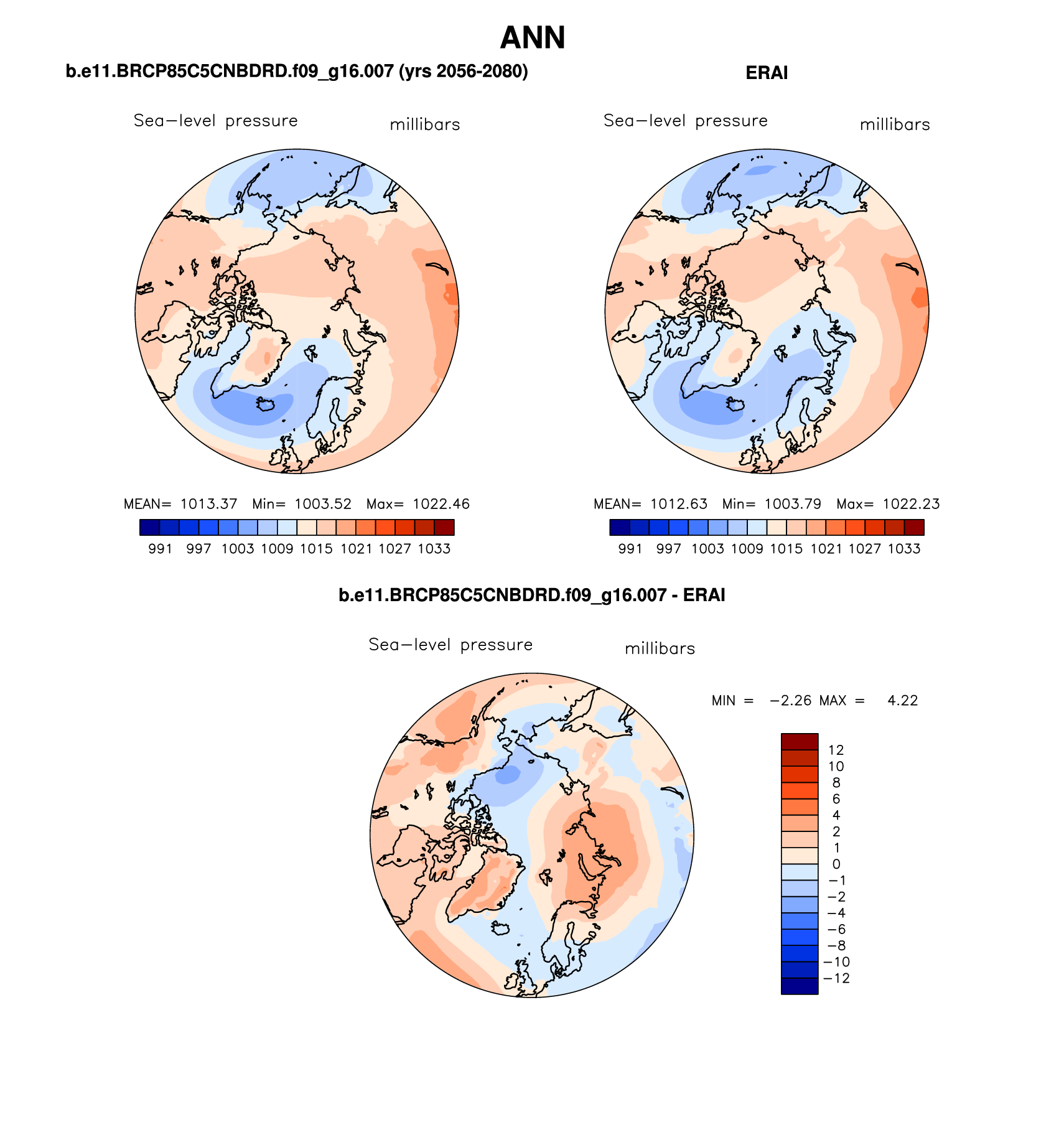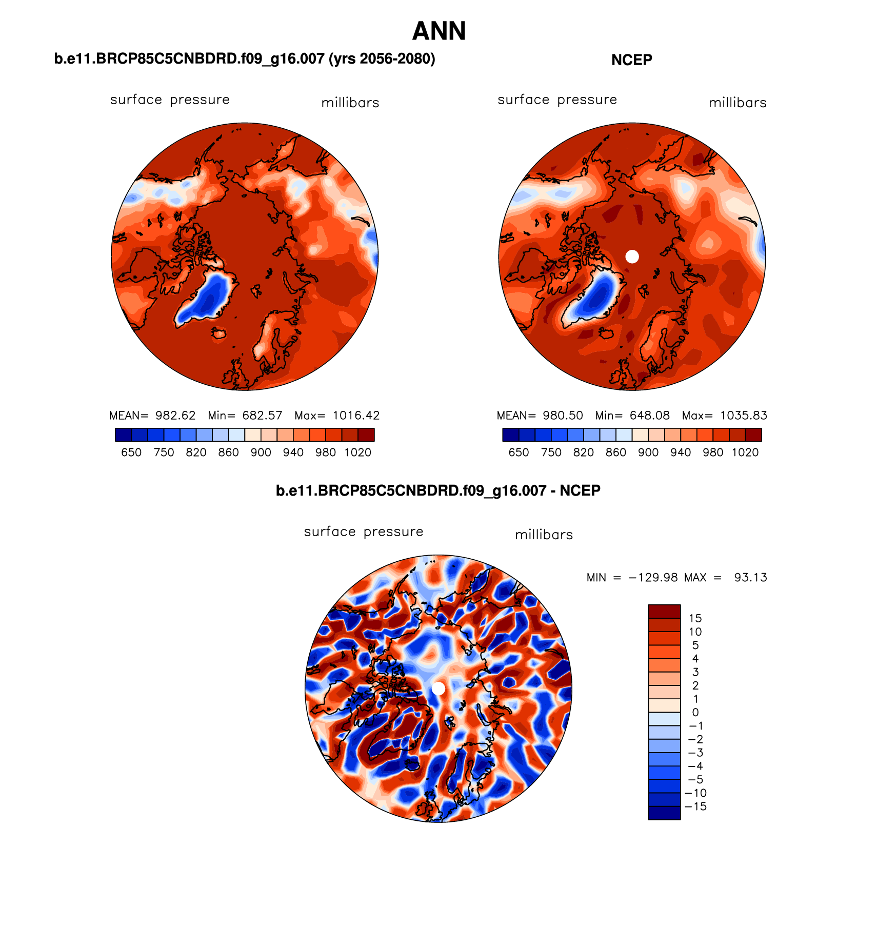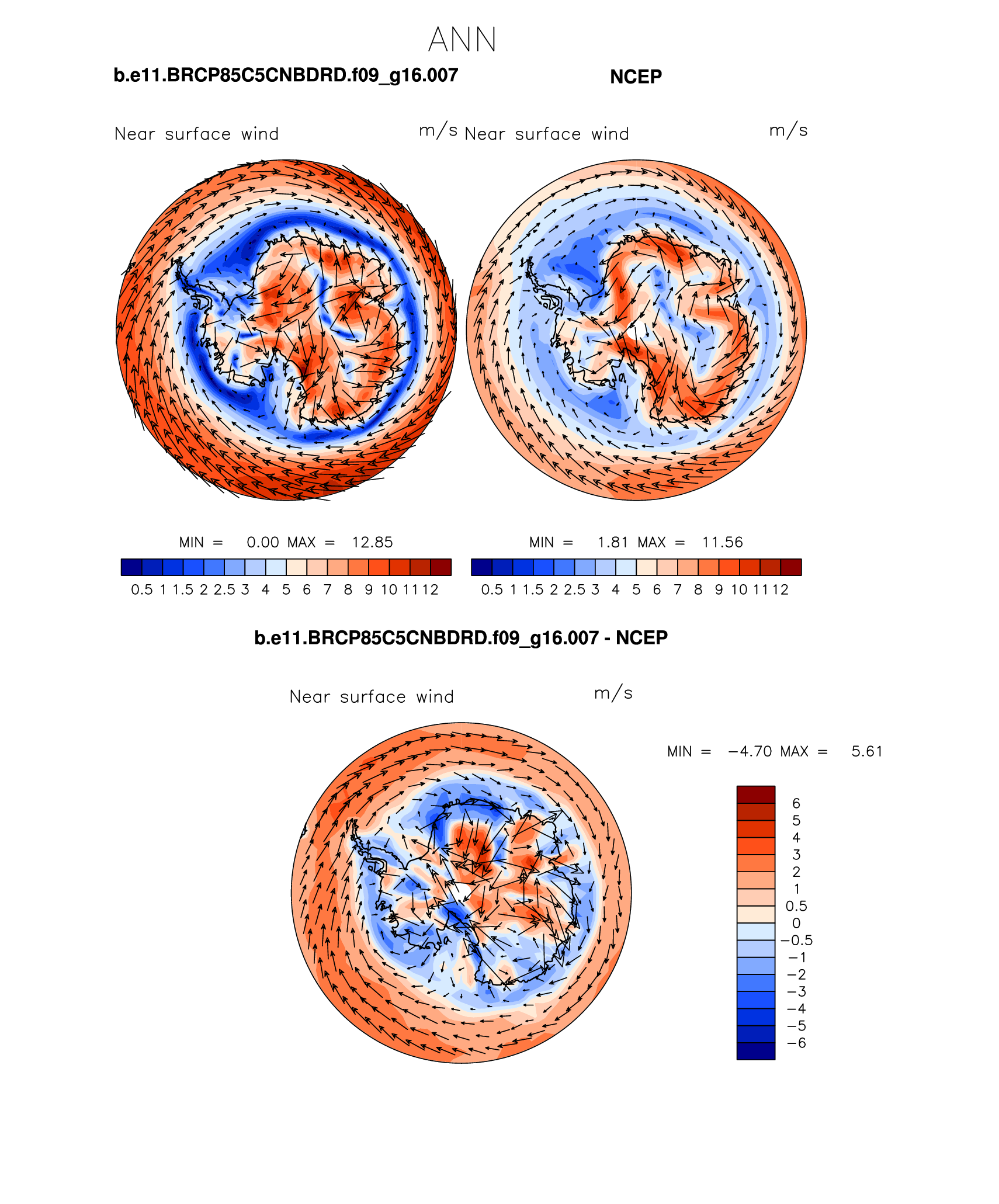 b.e11.BRCP85C5CNBDRD.f09_g16.007 DIAG Set 7 - Polar contour/vector plots of DJF, JJA and ANN means