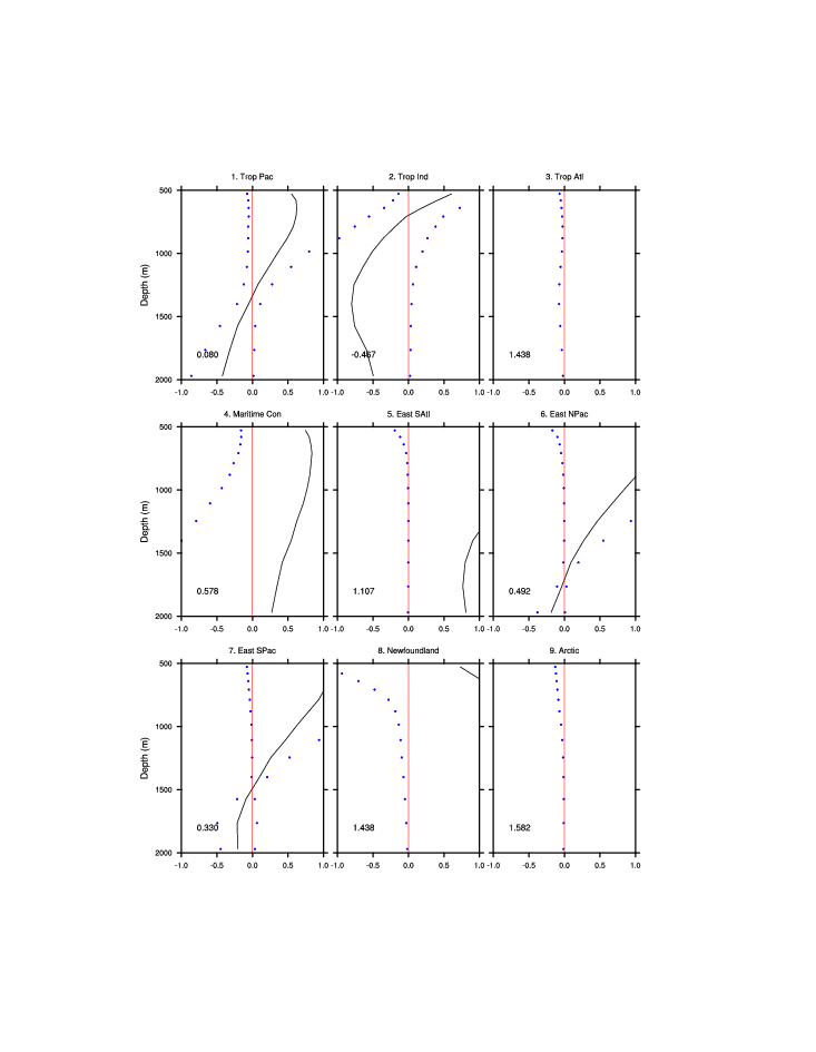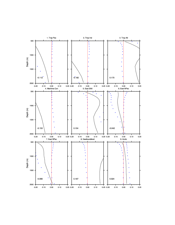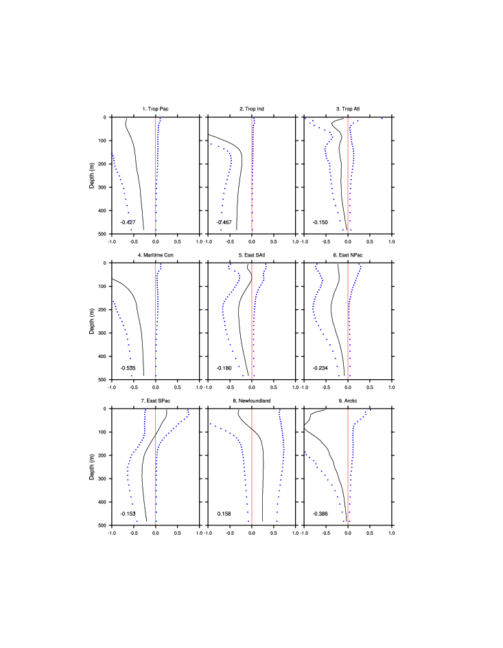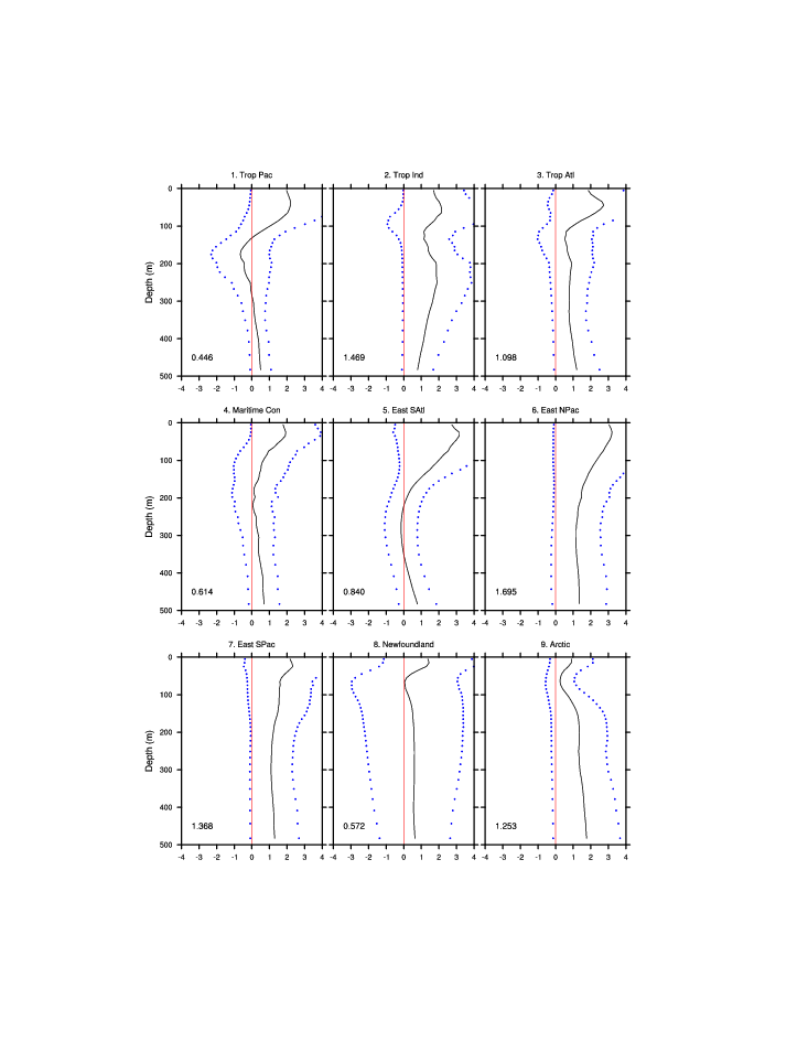 | Regional average T & S anomaly vs. depth