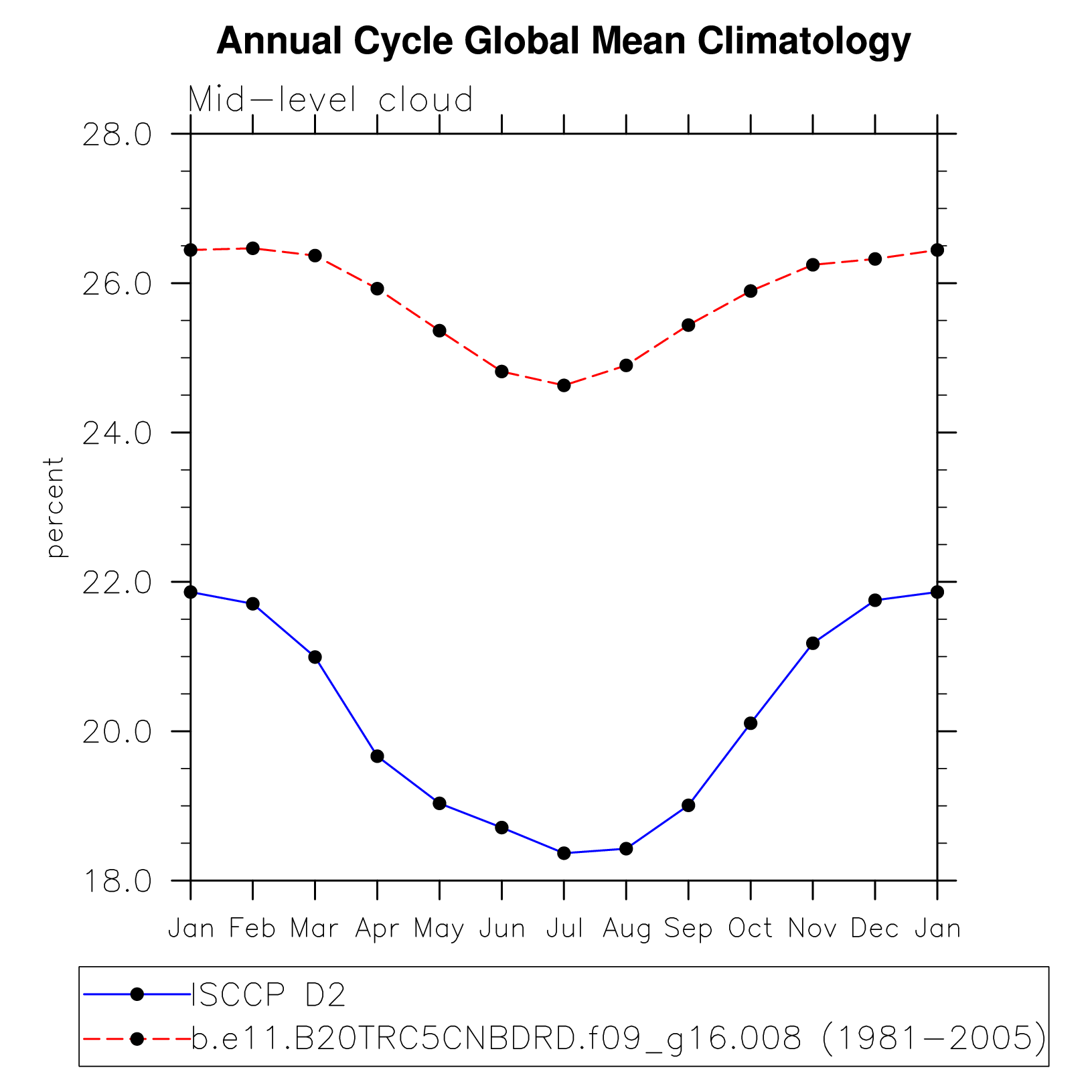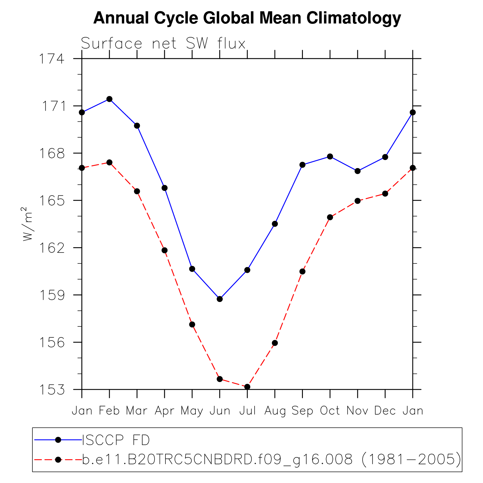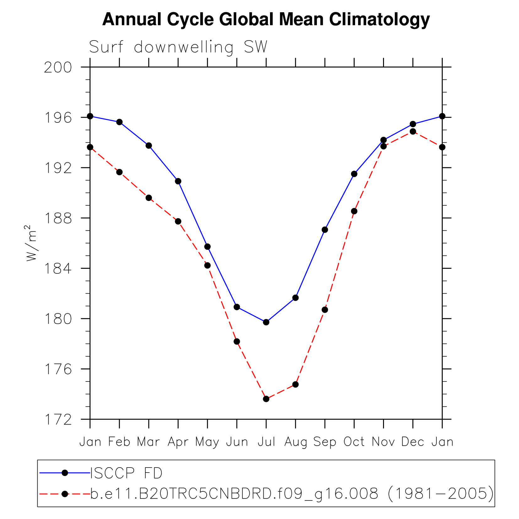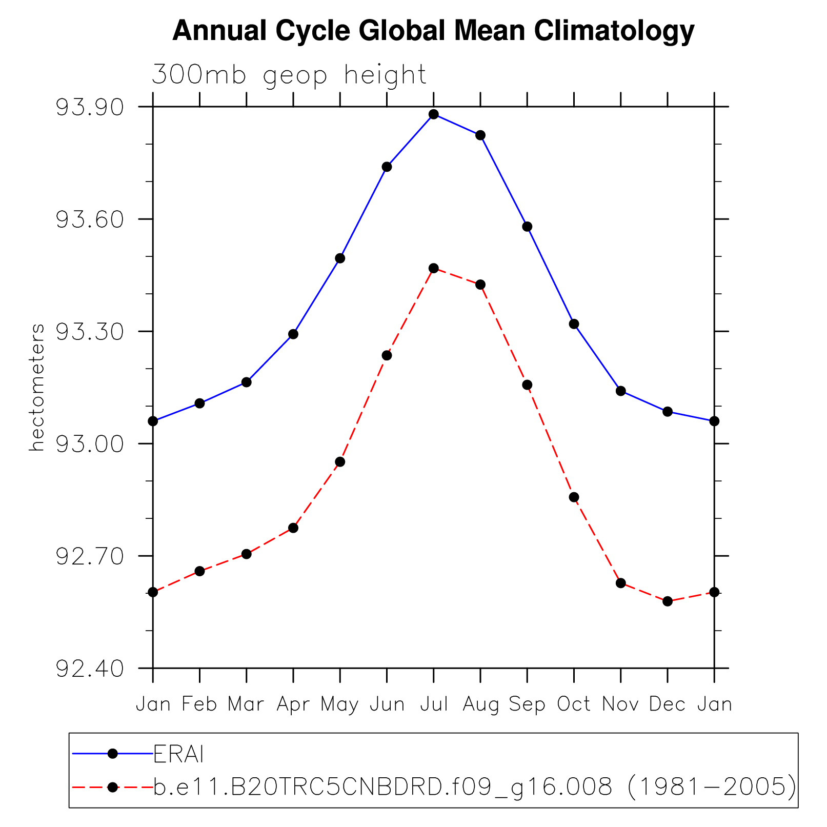 DIAG Set 10 - Annual cycle line plots of global means
