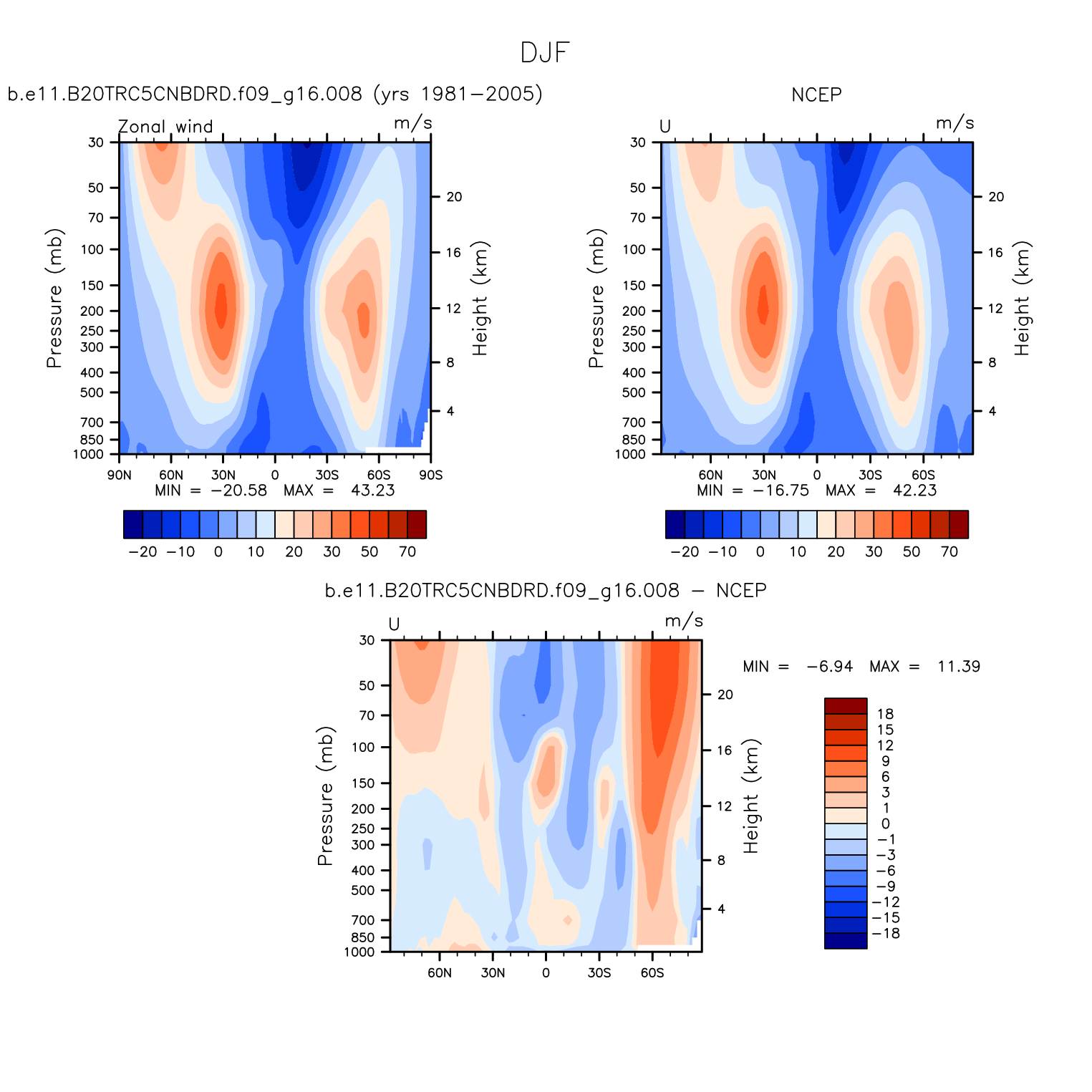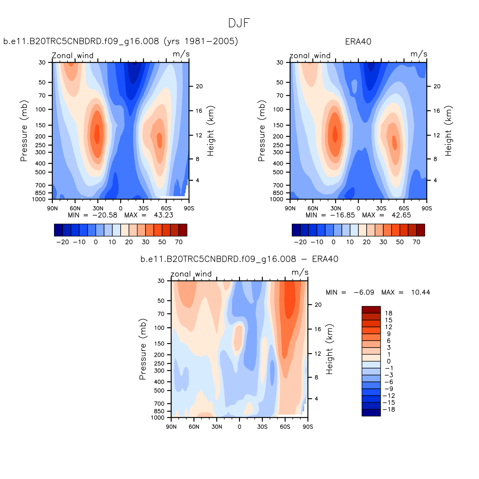 DIAG Set 4 - Vertical contour plots of DJF, JJA and ANN zonal means
