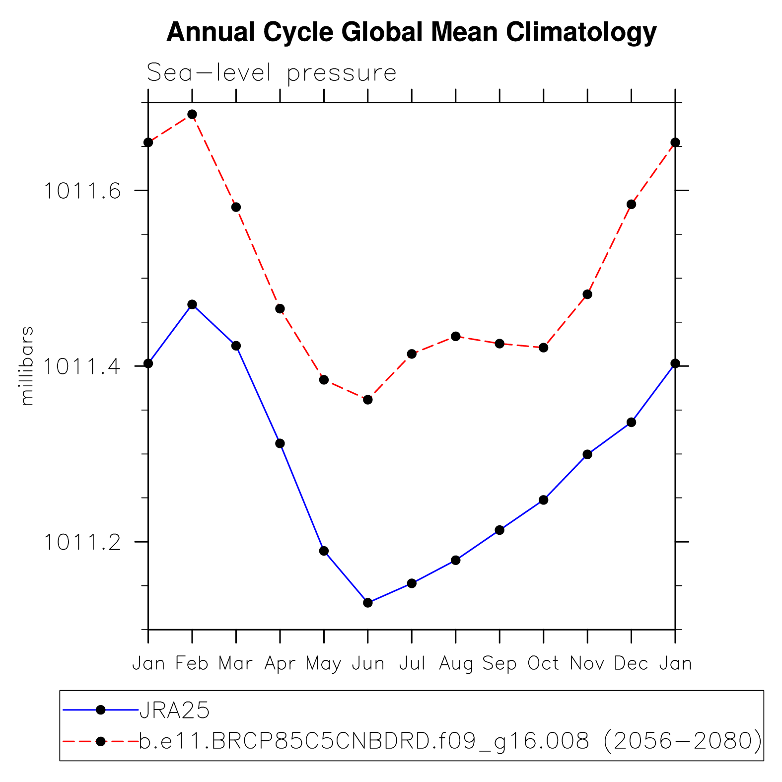 DIAG Set 10 - Annual cycle line plots of global means