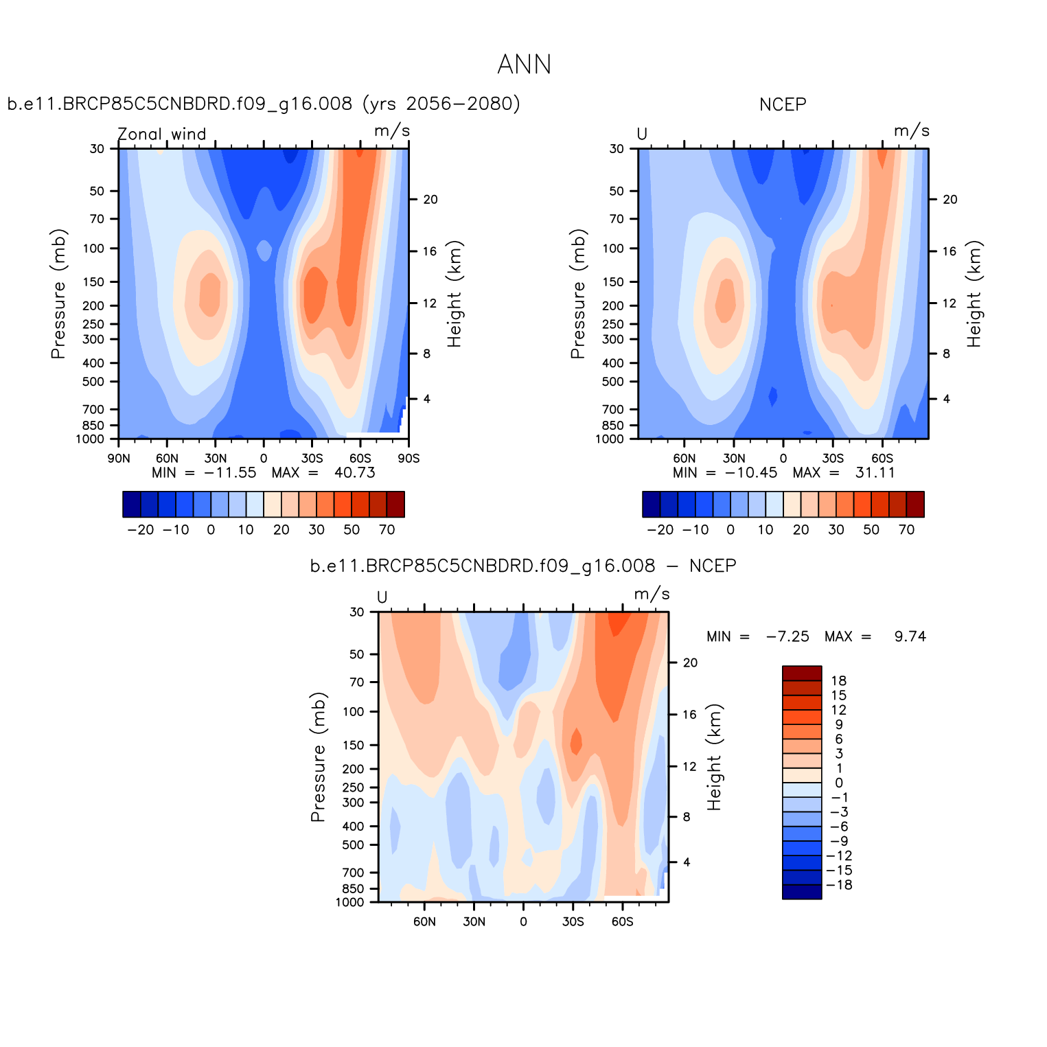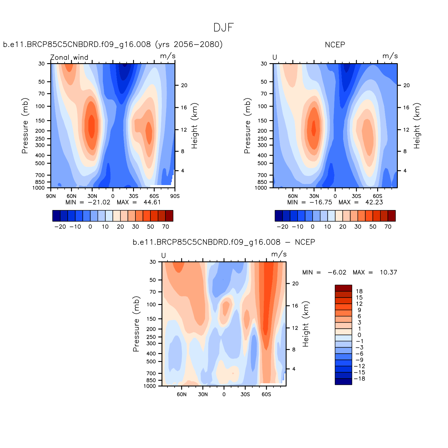 DIAG Set 4 - Vertical contour plots of DJF, JJA and ANN zonal means