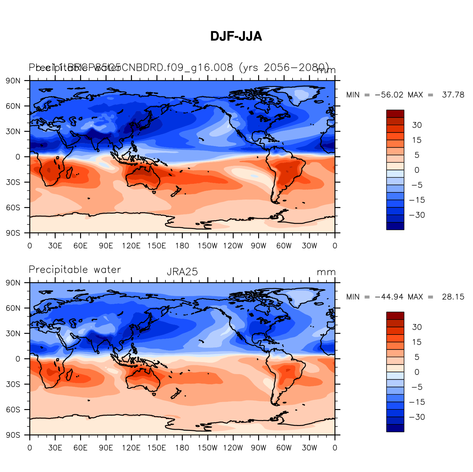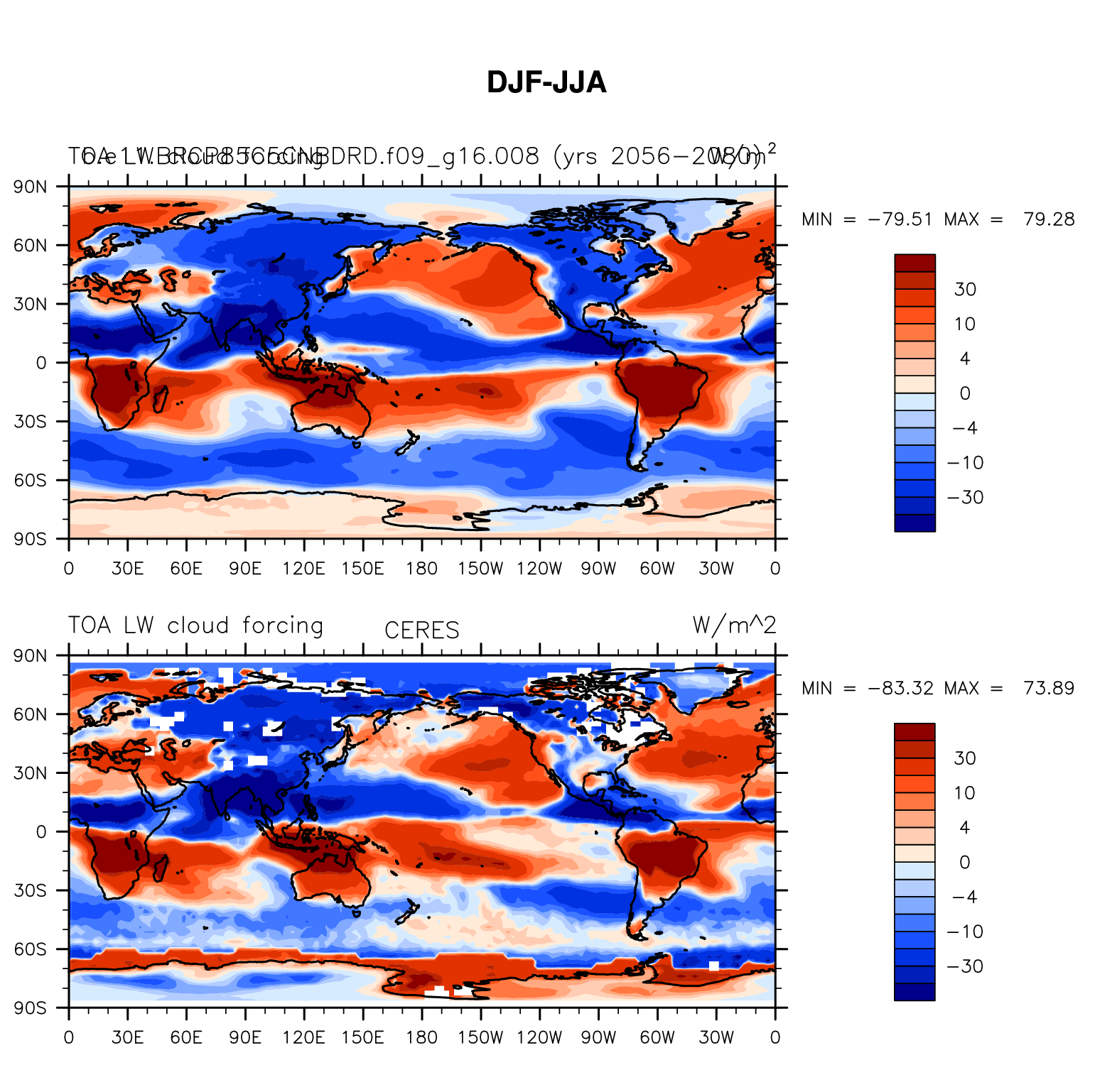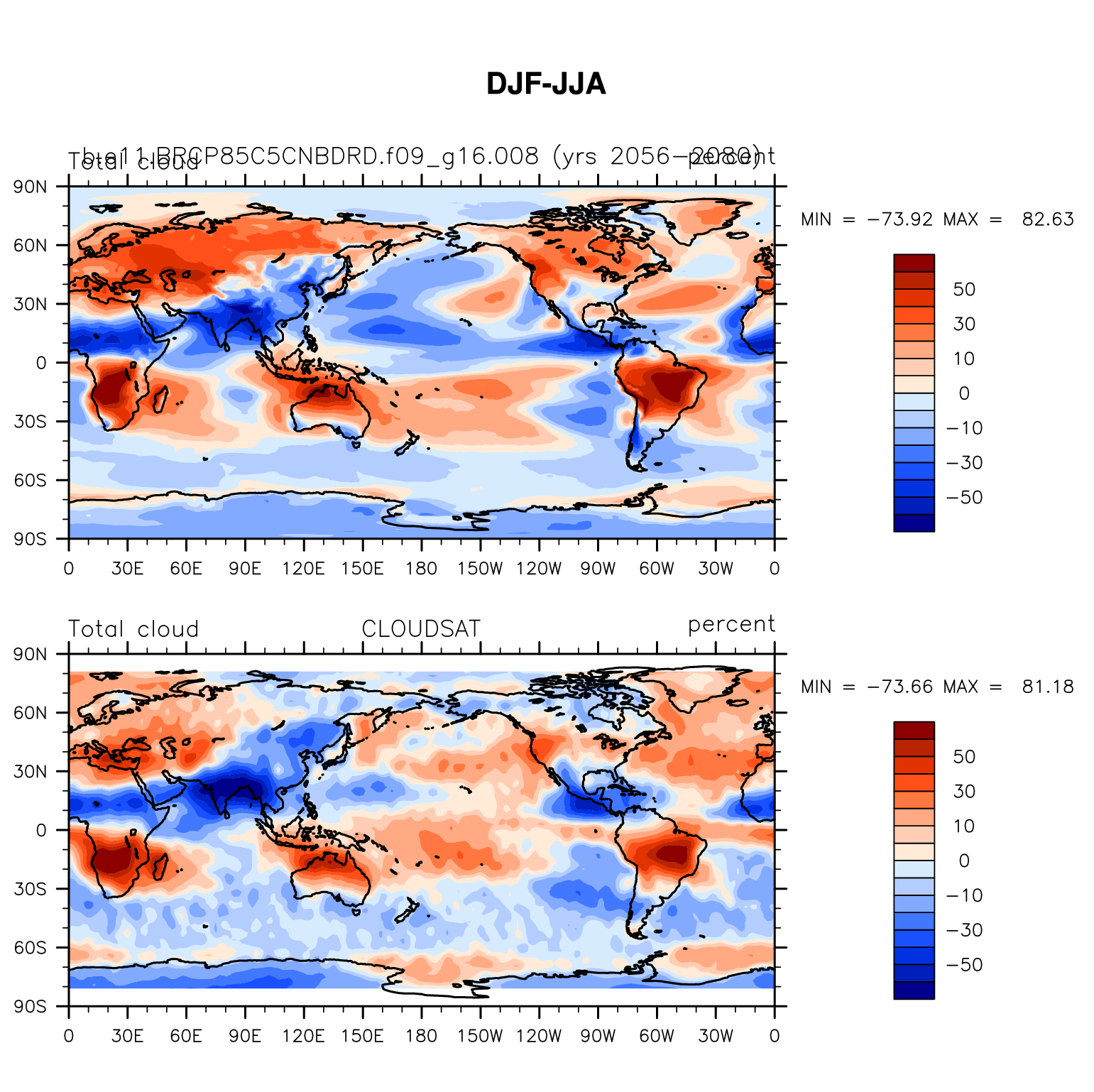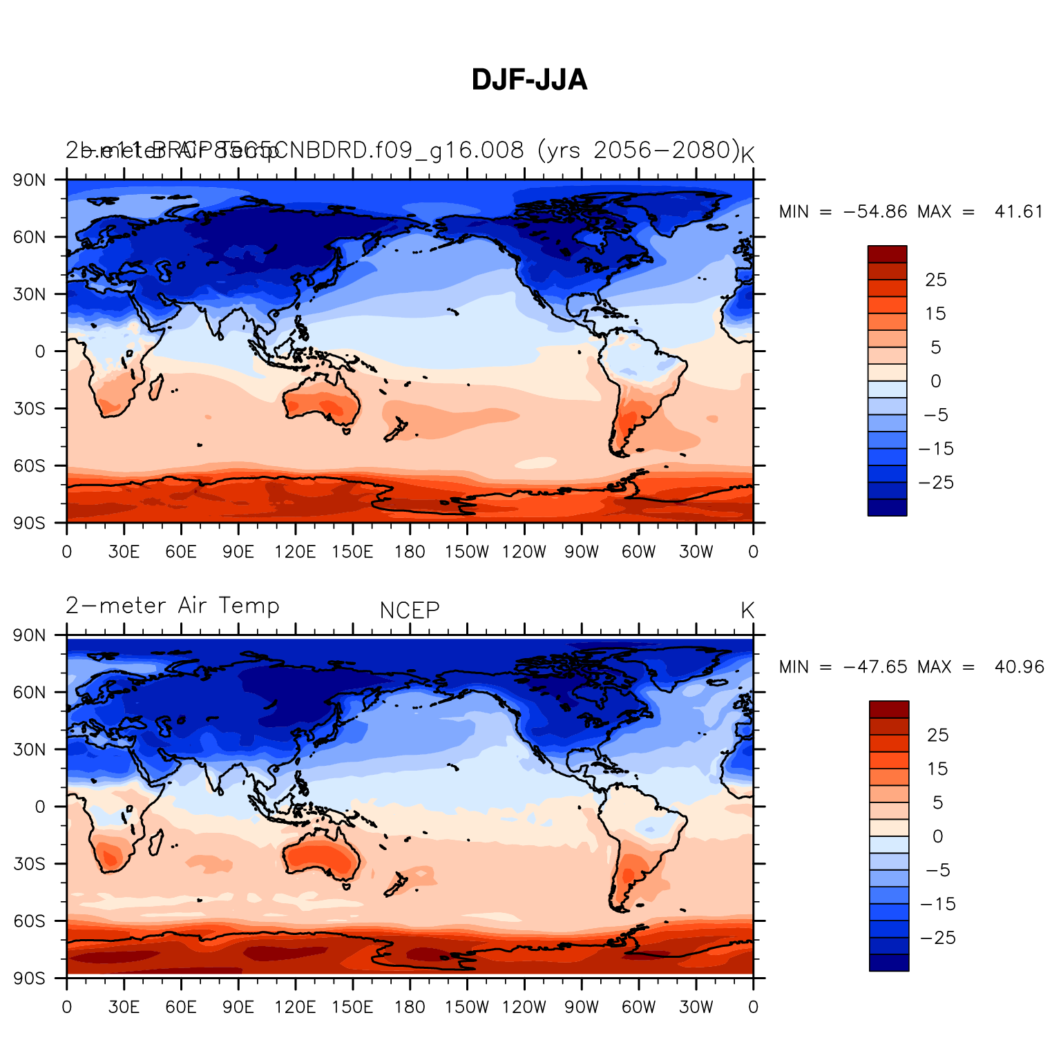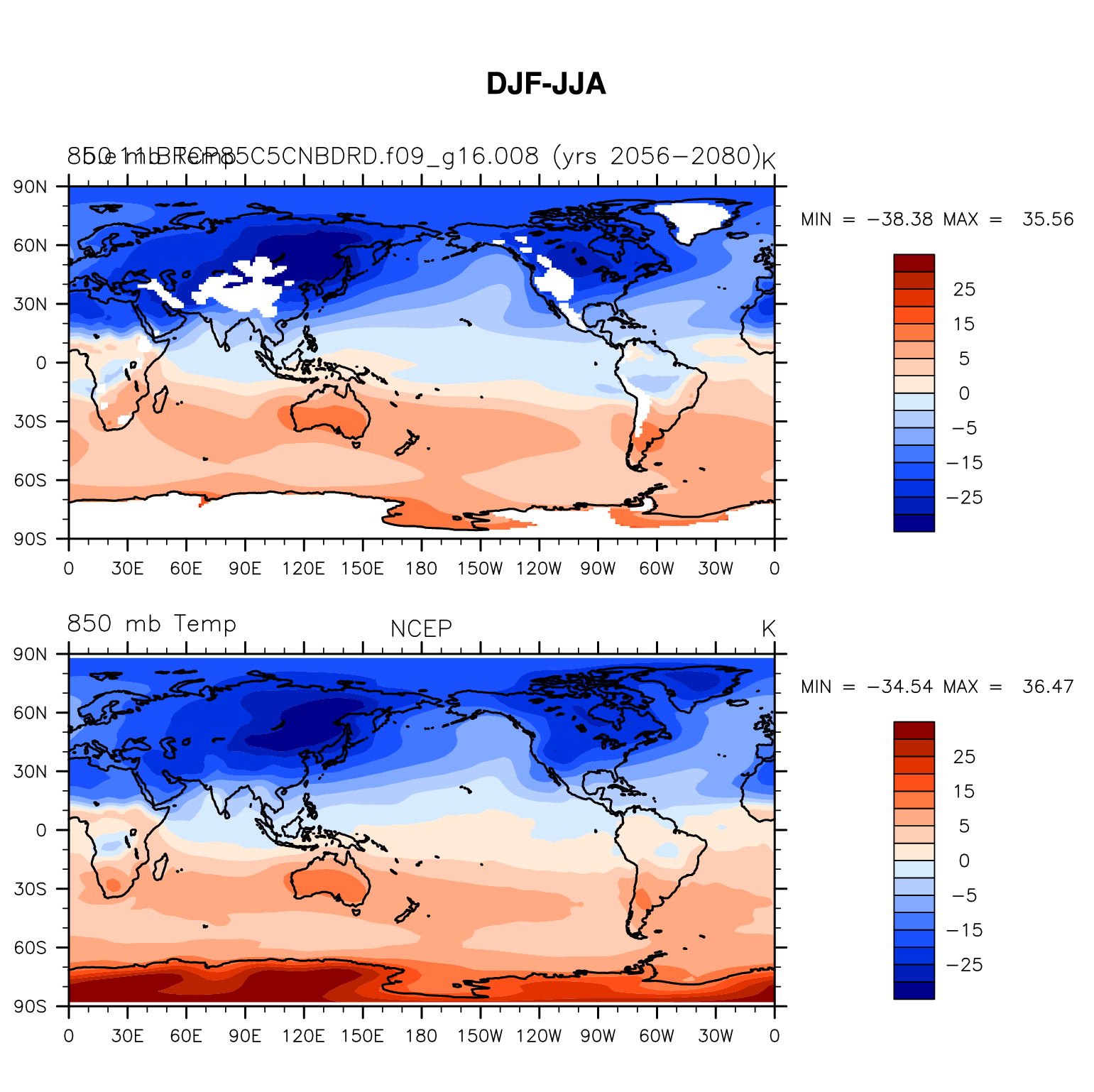 b.e11.BRCP85C5CNBDRD.f09_g16.008 DIAG Set 9 - Horizontal contour plots of DJF-JJA differences