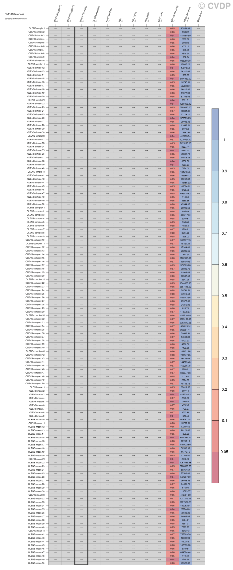 | Sort By: | Namelist (default) | Namelist (Alphabetically) | ENSO TAS | ENSO PSL | El Niño Hovmöller | La Niña Hovmöller | AMV Low-Pass | PDV | NAO | PNA | SAM | SST std dev | PR std dev | Mean Score |