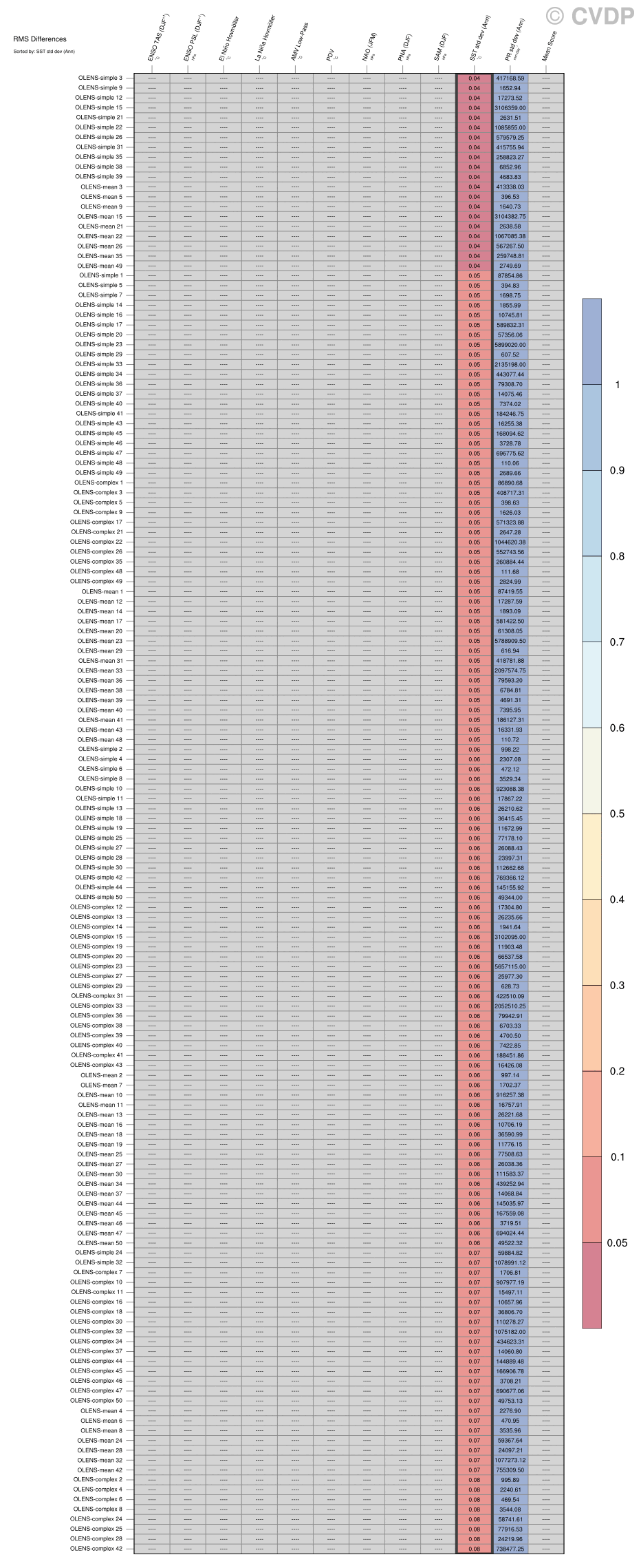 | Sort By: | Namelist (default) | Namelist (Alphabetically) | ENSO TAS | ENSO PSL | El Niño Hovmöller La Niña Hovmöller | AMV Low-Pass | PDV | NAO | PNA | SAM | SST std dev | PR std dev | Mean Score  |