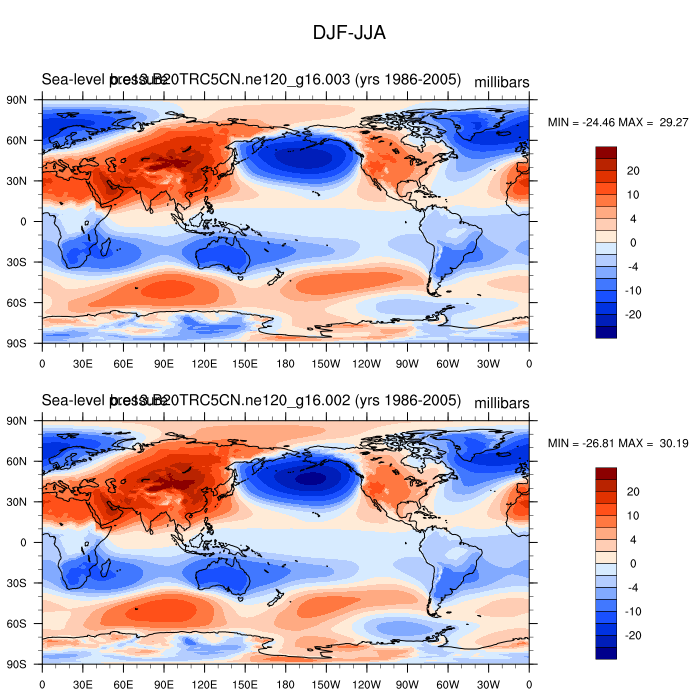 DIAG Set 9 - Horizontal contour plots of DJF-JJA differences
