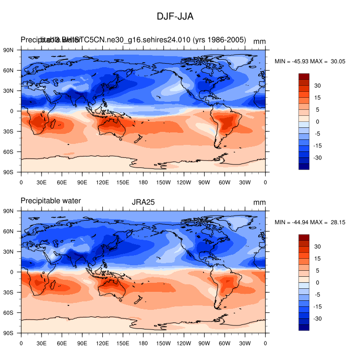 b.e13.BHISTC5CN.ne30_g16.sehires24.010DIAG Set 9 - Horizontal contour plots of DJF-JJA differences