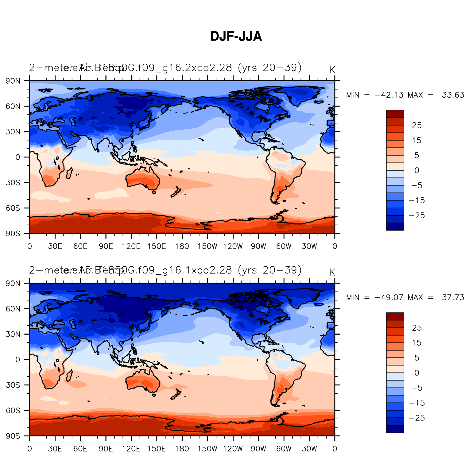 DIAG Set 9 - Horizontal contour plots of DJF-JJA differences